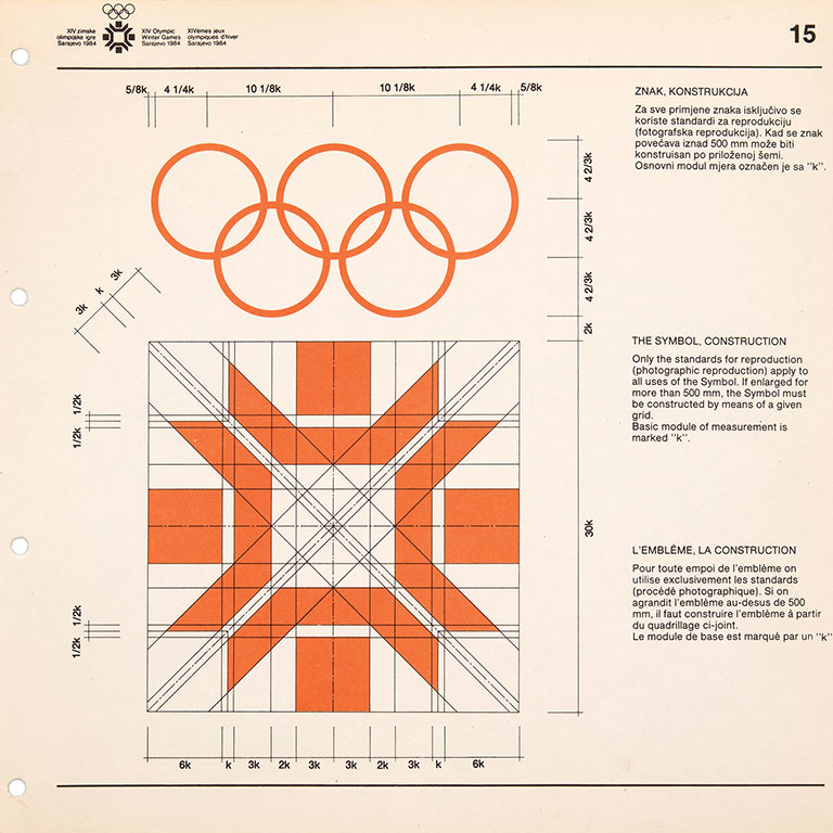 Elements of visual identity - logo, mascot, typography and color system defined by the Book of Standards were used in the design of all accompanying forms. Thus, Ivo Boras designed the system of traffic signs and signals. Fuad Hadžihalilović designed ID cards for all officials, accredited journalists and guests. Branko Bačanović designed the ticket system for Olympic competitions. Srđan Kokoruš, together with Branko Modraković, formed a creative group that designed numerous publications, under the artistic guidance of Prof. Mladen Kolobarić. Ismet Berbić worked on the design of acknowledgment cards.